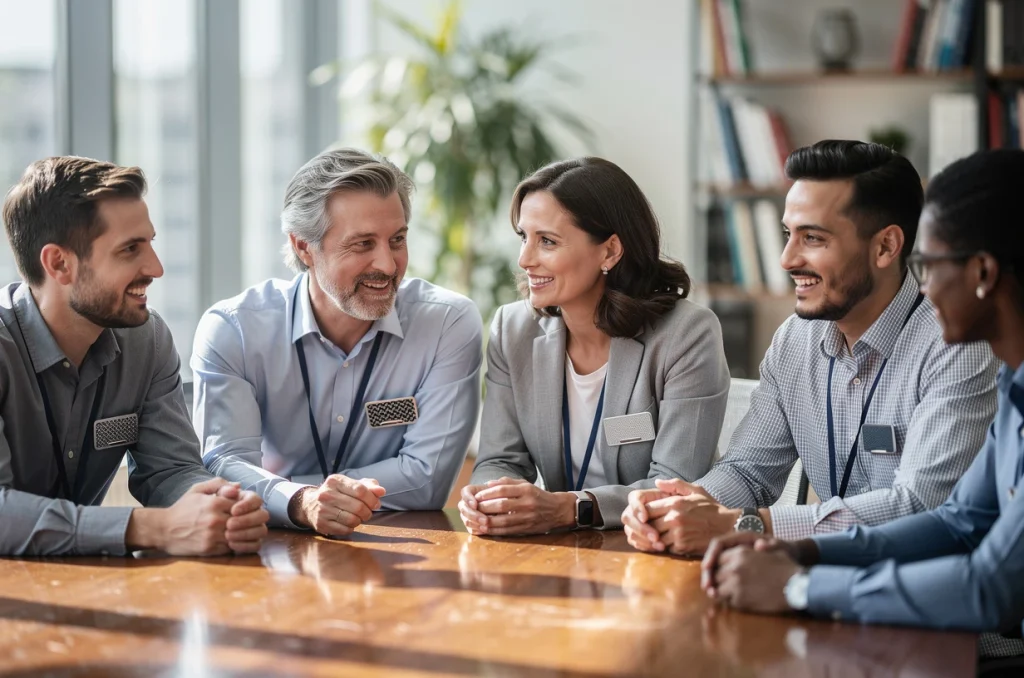 Le port de badges personnalisés fluidifie les échanges quotidiens. Lors des réunions interservices ou dans les couloirs, les collègues hésitent moins à engager la conversation grâce à une identification immédiate. Le badge sert de point de départ pour dialoguer, ce qui améliore naturellement la circulation de l’information en interne et facilite la collaboration.